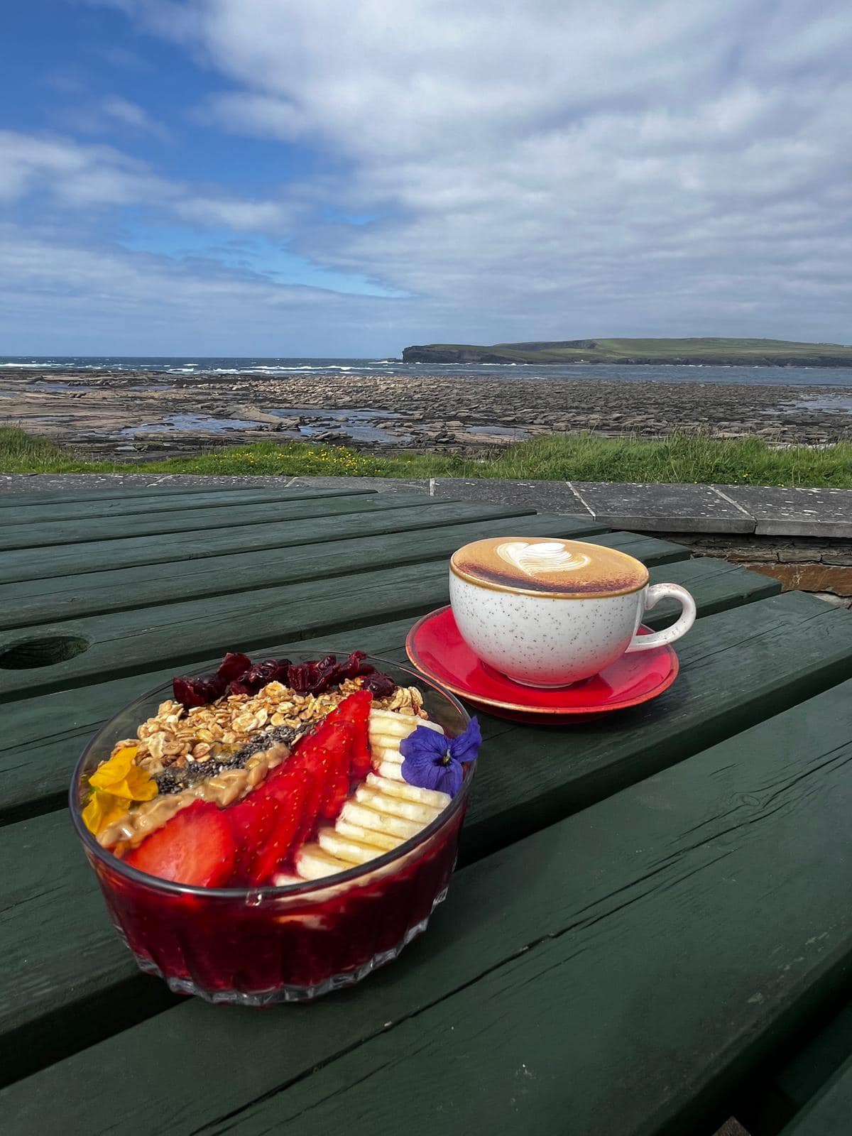 The Diamond Rocks Café is a family run business and is located on the cliff walk in Kilkee. The cliff walk (a three mile loop from outside the cafe’s door, around the cliffs and down Dunlickey Road) has stunning and spectacular scenery. The views from Look Out Hill on a clear day are of the Aran Islands to the North, Kerry to the South and Loop Head to the West. Views of George’s Head, the Pollock Holes, Duggerna Rocks and the Diamond Rocks are some of the sights to take in. When Russell Crowe visited the café in 2007, he said that “it’s the best cliff walk in the world”! While the Cliffs of Moher are stunning, the cliffs at Kilkee are breathtaking, more accessible and free of charge. The views are amazing and second to none. The café is a great meeting place for either walkers, swimmers or just a lovely place for a catch-up. The food is sourced locally and children and families are a great part of our clientele. The café has a very busy atmosphere and the staff are friendly, courteous and helpful.