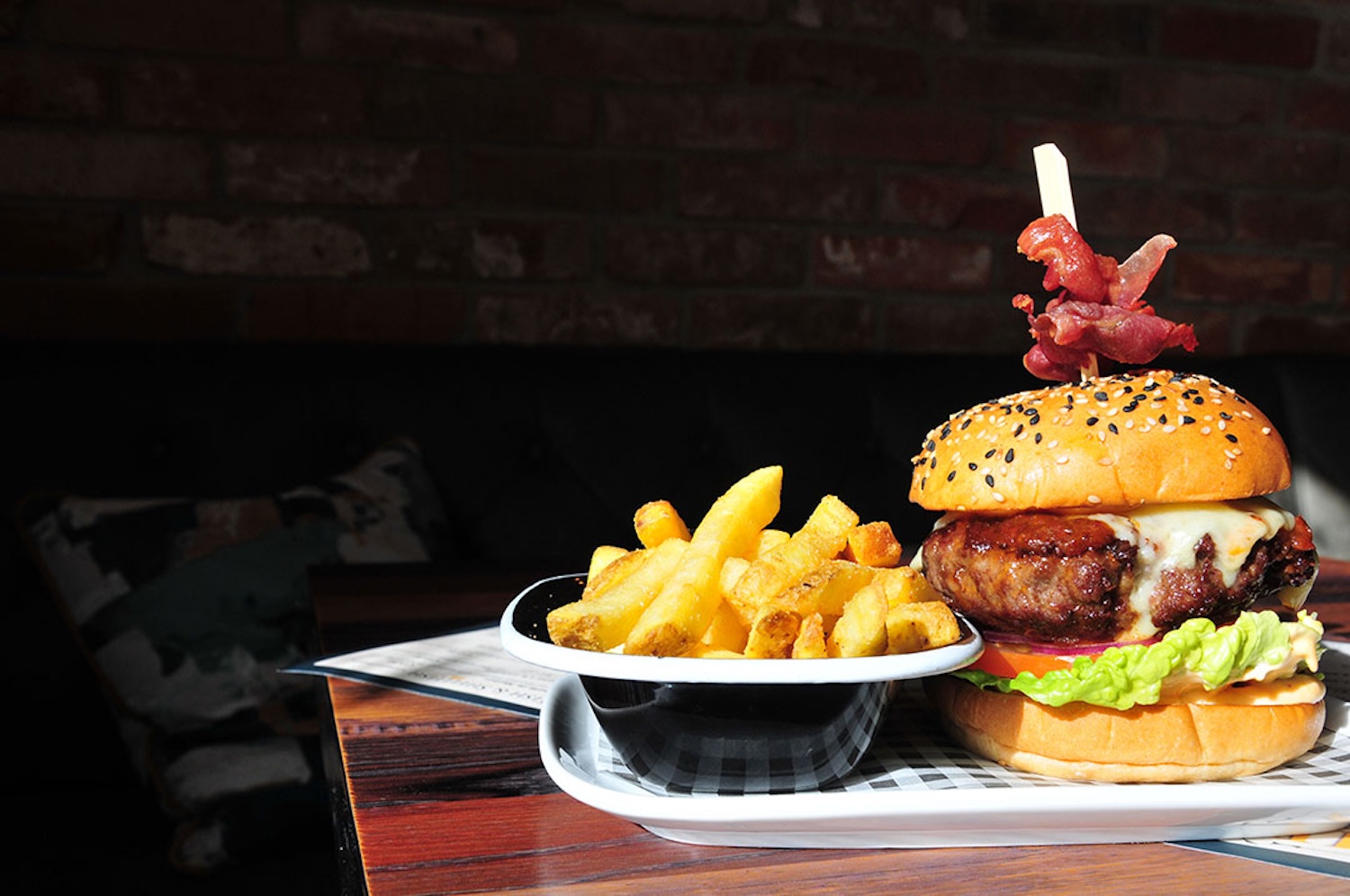The restaurant itself is warm and inviting with a rustic feel. The concept has been created by us to give you the distinct feel of being in a modern venue that incorporates a feeling of being in any city in the world from the moment you step inside.