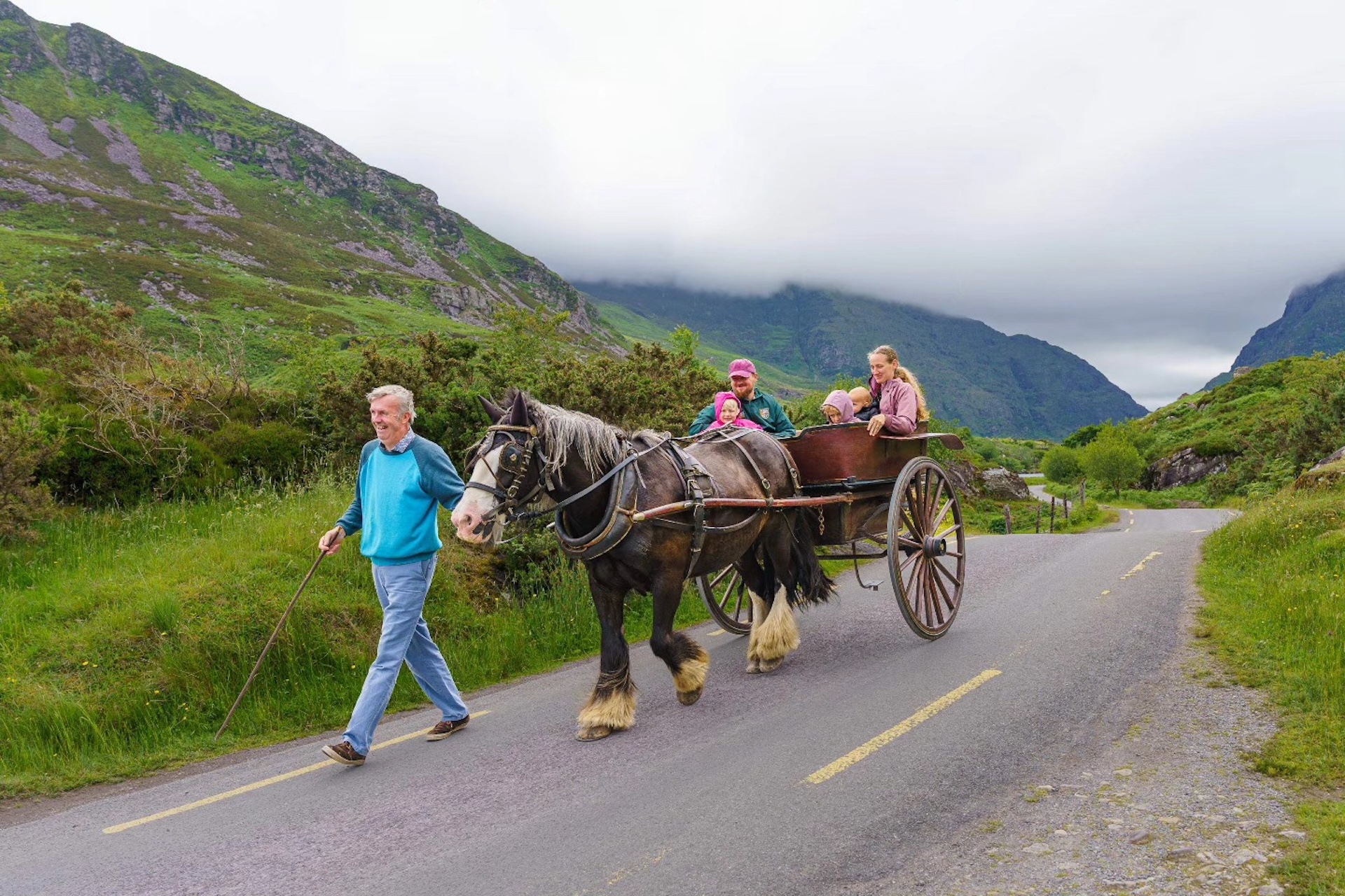 Your journey begins with a bus trip to Kate Kearney’s Cottage or Ross Castle (recommended starting point for walkers as it allows more time). For those who may chose not to walk Jaunting cars are available at Kate Kearney’s Cottage & Lord Brandon’s Cottage, the cost is €140 per Jaunting Car (€35pp) that sits 4 people to be paid in cash on the day. The Jaunting cars take approximately 1.5 to 2 hours to travel the 7 mile (12km) journey through the Gap.